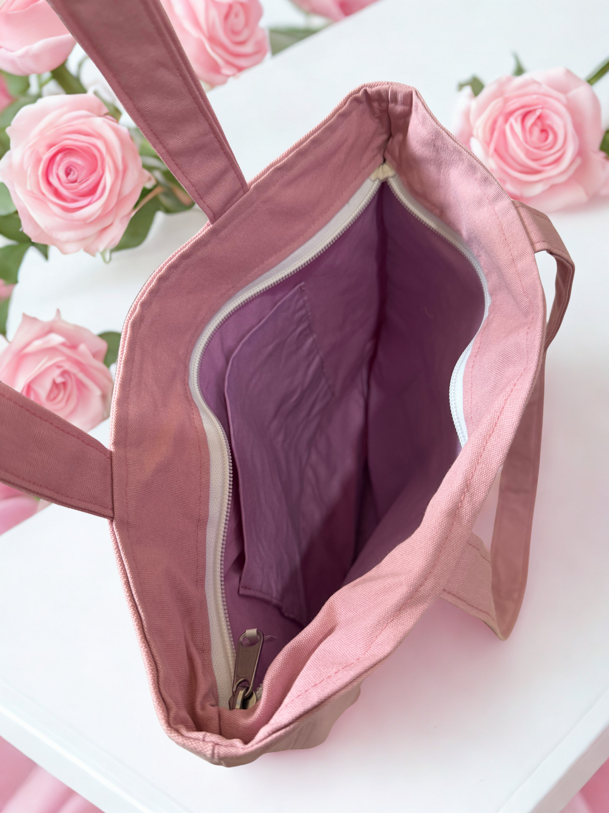 🌱 The bag has zipper, a small pocket outside and a large pocket pocket inside.Â