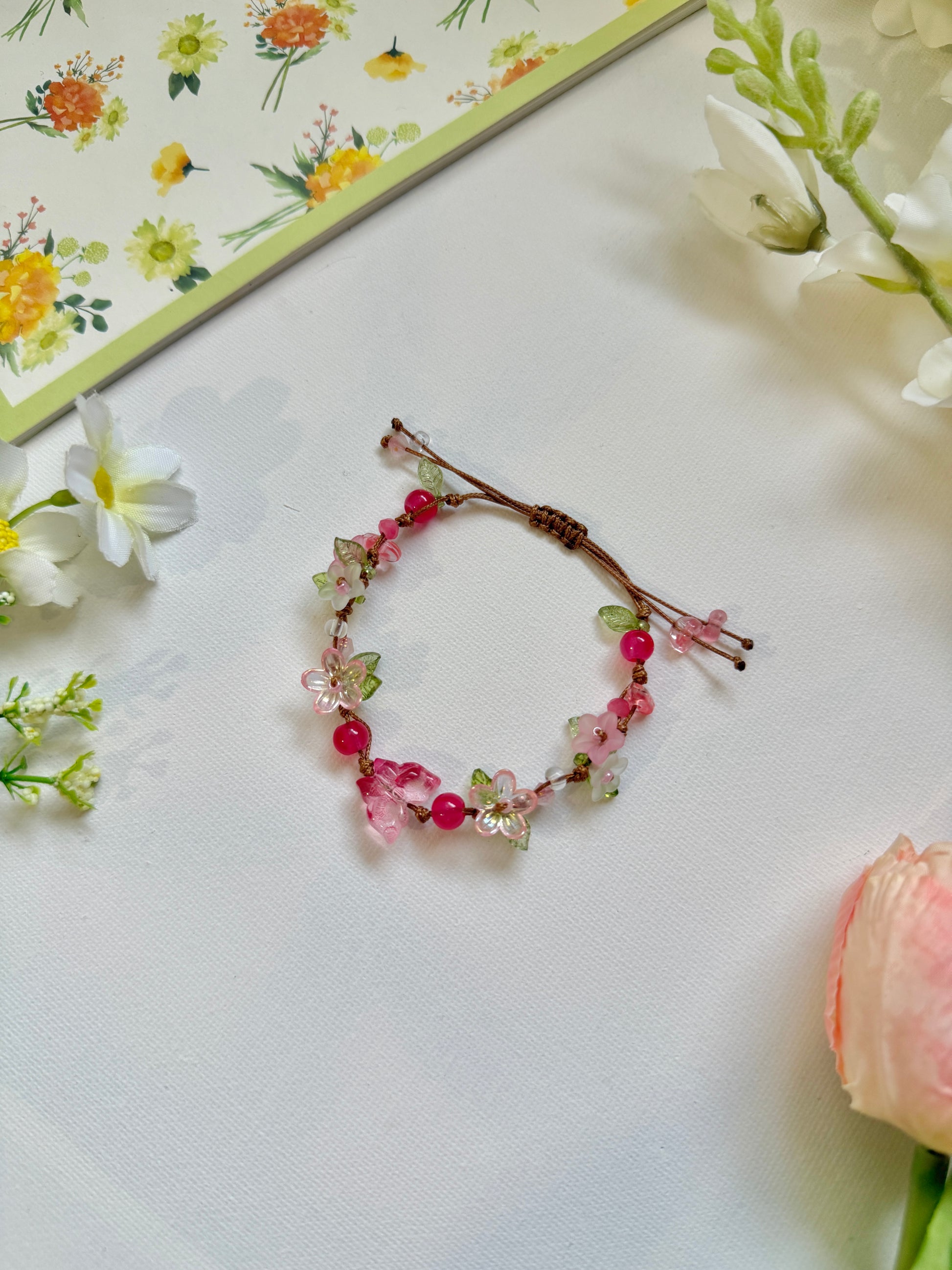 āļø Made with durable waxed cord and acrylic, glass flower beads, adjustable size.
